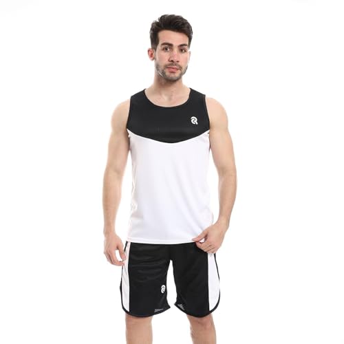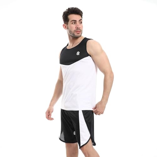 Generic - Men's Athletic Tank Top and Shorts Set, Black and White, Sleeveless Training Outfit