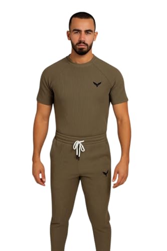 ELHWARY - بدلة رياضية مكونة من تيشرت بأكمام قصيرة وبنطلون رياضي للركض للرجال، متعددة الألوان - تيشرت قطن وبنطلون رياضي للرجال