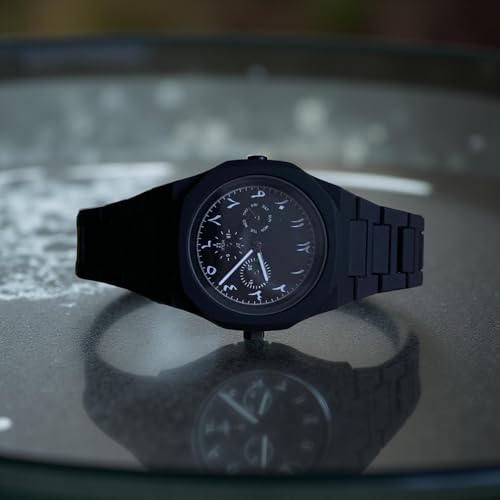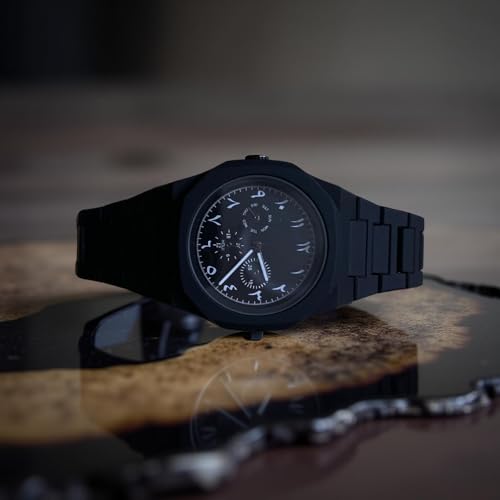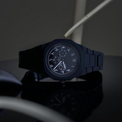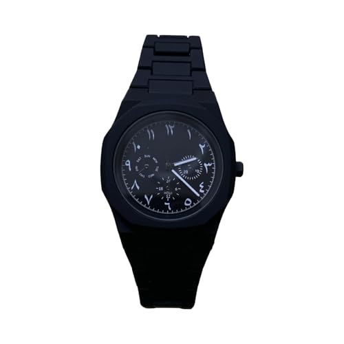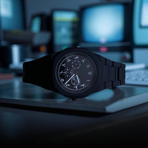 Generic - ساعة يد رجالية سوداء، كرونوغراف، سوار سيليكون، تصميم رياضي