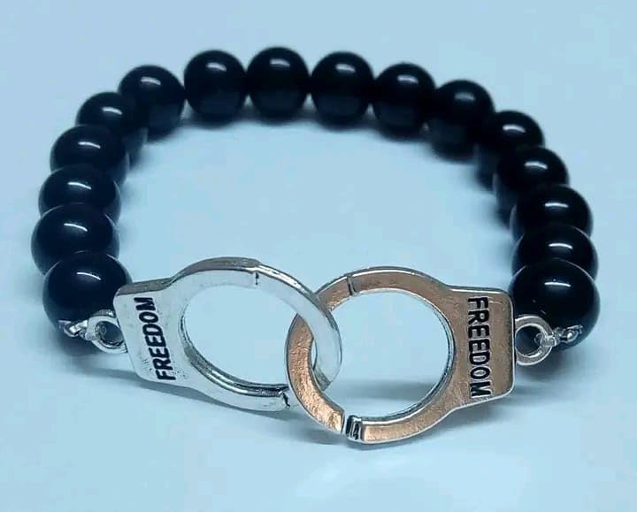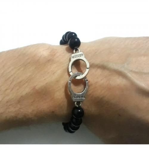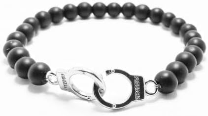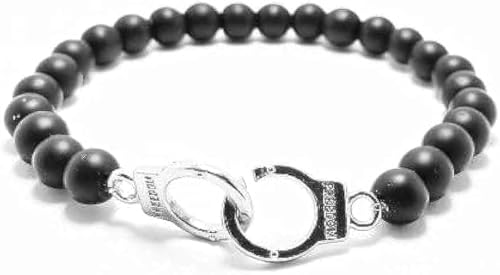 Generic - سوار كلبشة رجالي من حجر الأونيكس الأسود، ٨ مم، مع حلية فضية