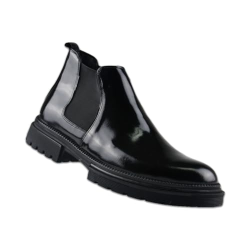 Generic - بوت بطول الكاحل سهل الارتداء من الجلد الطبيعي على شكل حرف V للرجال - مقاس S4*X (EU، 44)، أسود