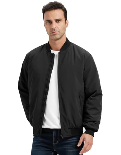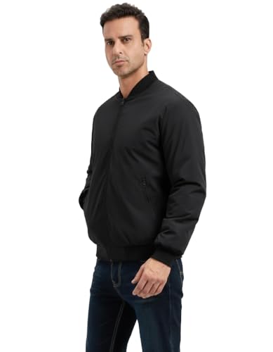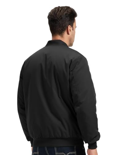 Generic - Men's Bomber Jacket, Black, Zip-Up, Ribbed Collar and Cuffs, Casual Style
