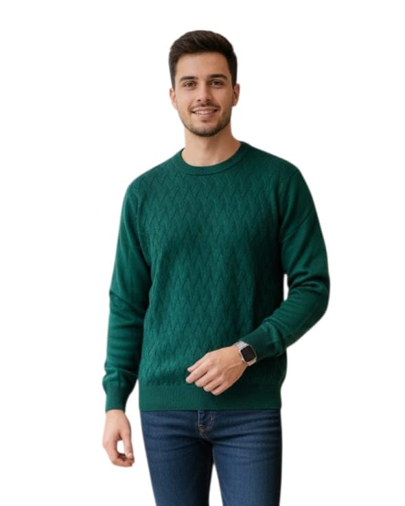 VIKIN'G.EG - Men's Cable Knit Sweater, Green, Crew Neck, Long Sleeve, Casual Pullover