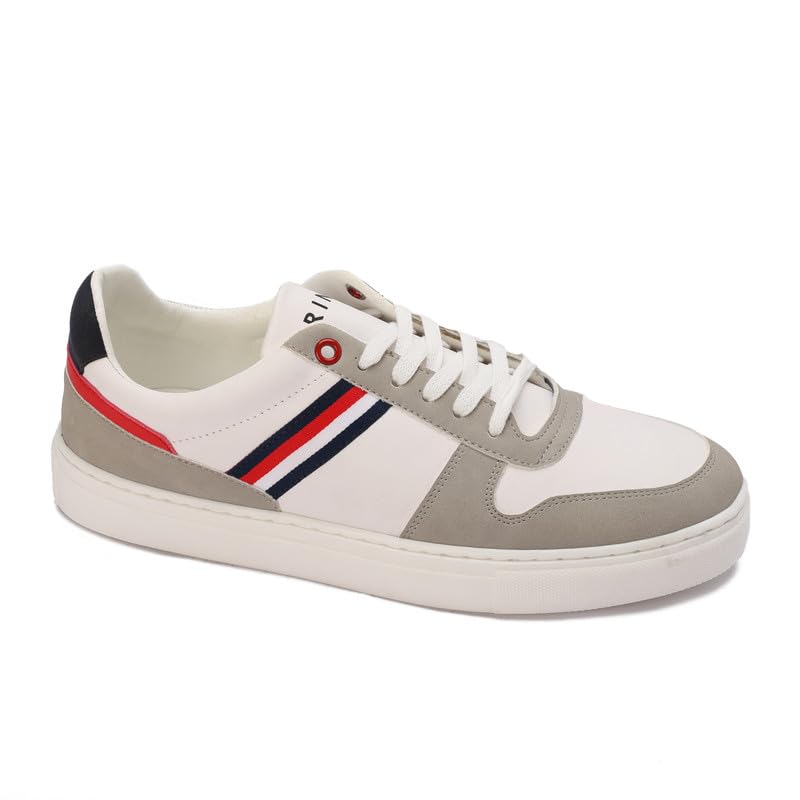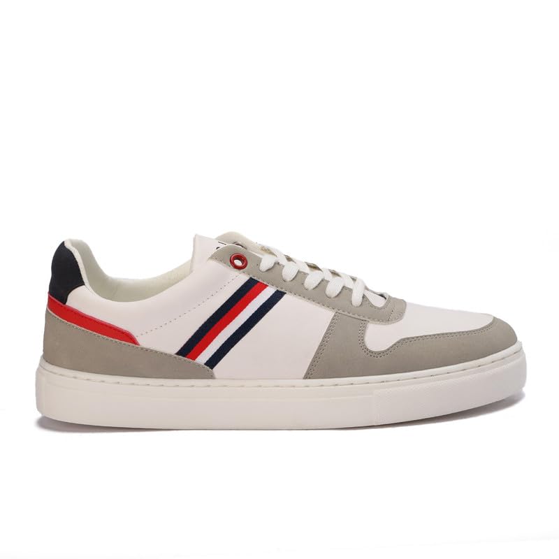 Generic - Men's Casual Low-Top Lace-Up Sneakers Stylish Fashion Shoes with Tricolor Stripe Accent Size 43 - White