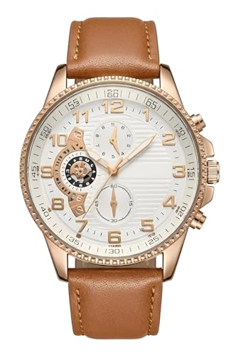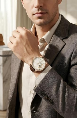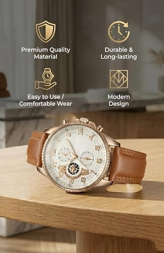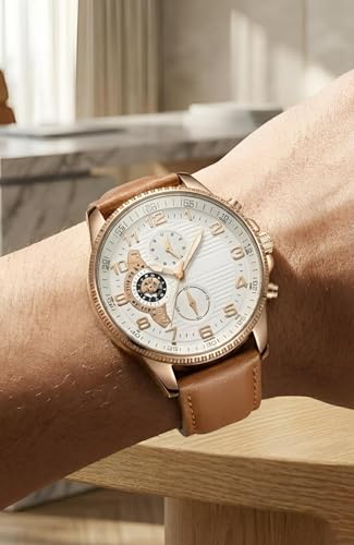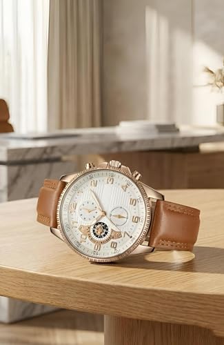 Generic - اكسسوار كرونوغراف للرجال - مينا فاخر متعدد الالوان بتفاصيل ذهبية، نافذة على شكل قلب مفتوح، سوار جلدي مناسب للعمل والمناسبات الخاصة