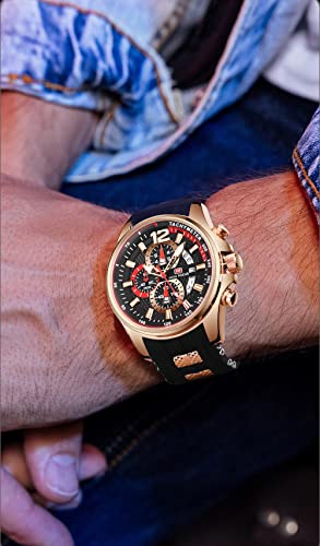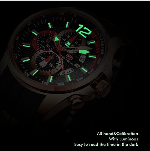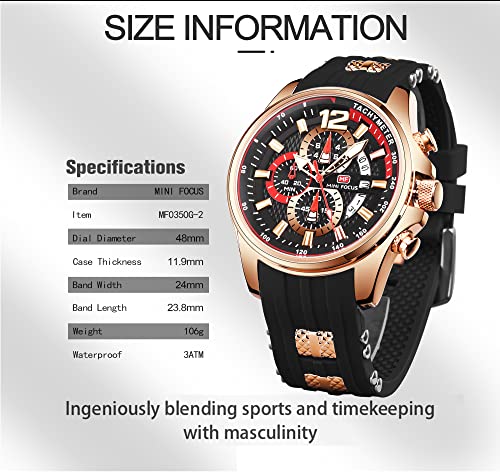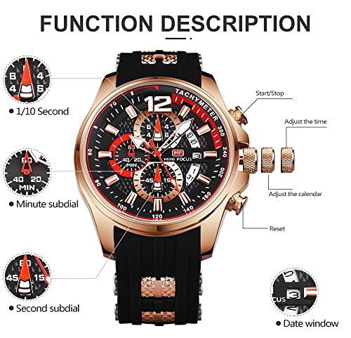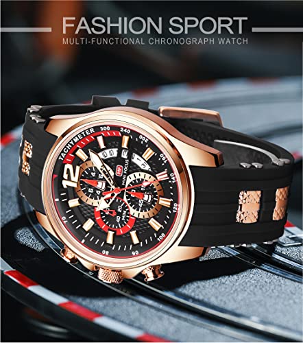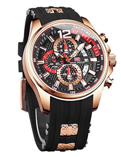 MF MINI FOCUS - Men's Chronograph Sport Watch Waterproof Military Watches for Men Black Analog Quartz Wristwatch with Date Display Silicone Strap Outdoor Clock Reloj para Hombre, Black-Gold