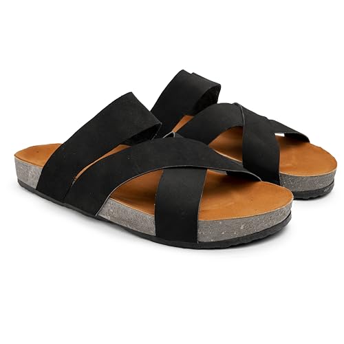 Now Shoes - Men's Comfortable Suede Crossover Strap Slide Slipper - Cork Footbed Summer Beach Slippers, P17