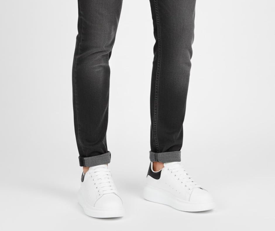 Italiano - Men's Fashion Black Accent Block Heel Sneakers - White (numeric_43)