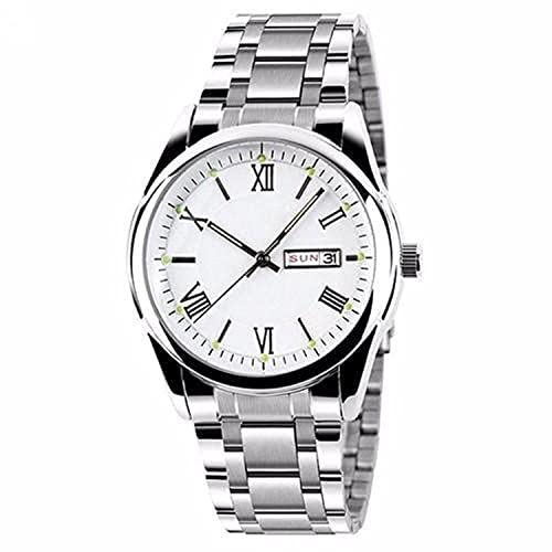 Generic - Men's Fashion Stainless Steel Band Roman Numerals Analog Date Quartz Wrist Watch White