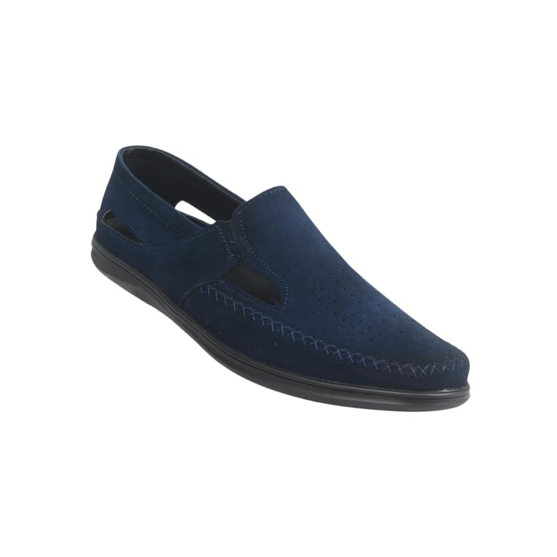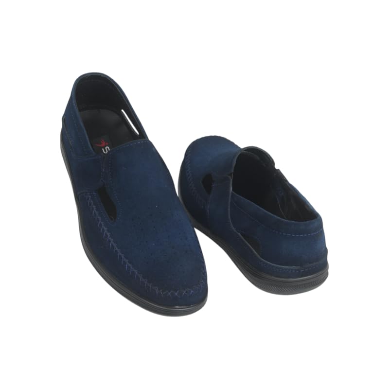 Generic - Men's flat suede shoes, genuine leather, perforated upper 539 Navy 45
