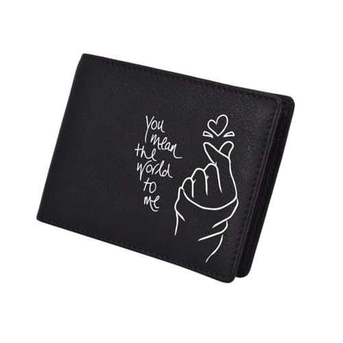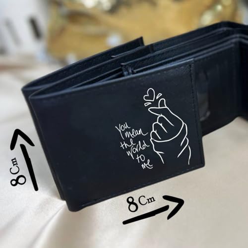 Generic - Men's Leather Wallet- Black- 8 cm* 8 cm- Compact size- One sided printing- You mean the world to me- Men's gift- Special gift- محفظة جلد رجالي- We print your gift