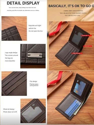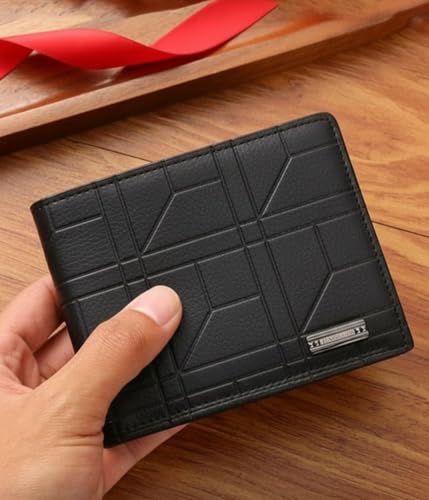 Generic - Men's Leather Wallet, Fashionable Plaid Soft Wallet, Large Capacity Multi-Card Slots, Can Store Large Bills, Simple Coin Pocket, Credit Card Bank Card ID Card Photo Slot,