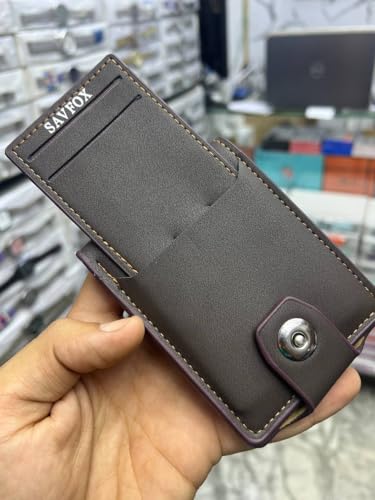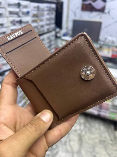 Generic - Men's Leather Wallet with Card Pockets and Side Zipper, Modern Design, Dark Brown