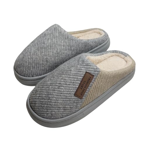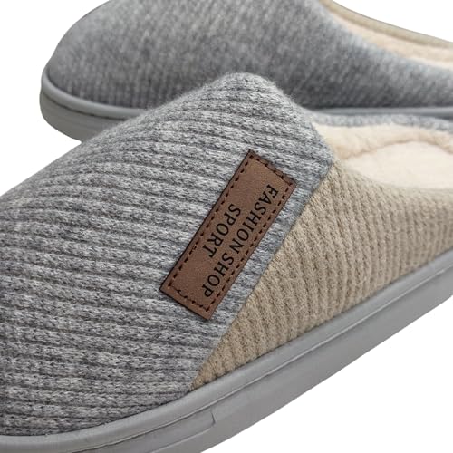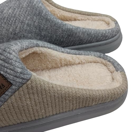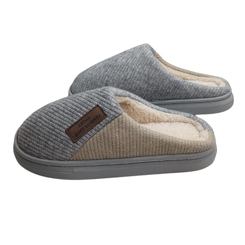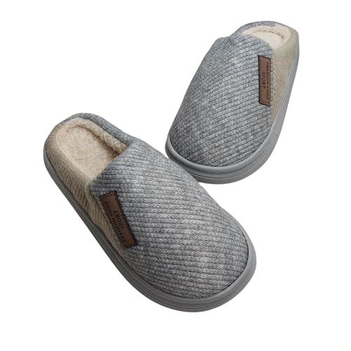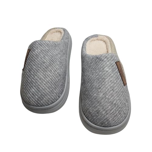 Generic - Men's Memory Foam House Slippers, Grey, Warm Plush Fleece Lined, Anti-Slip Rubber Sole, Indoor Outdoor Winter Comfort Shoes, Size 44/45
