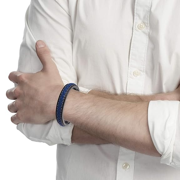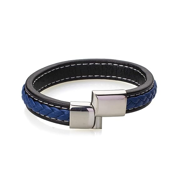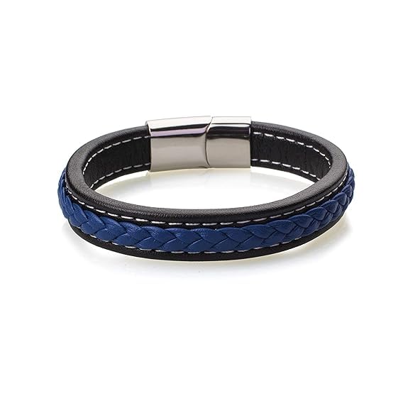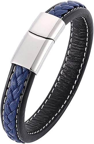 Generic - Men's Multi-Layer Braided Stainless Steel Leather Bracelet with Magnetic Clasp, 8.5in