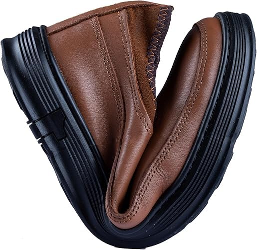 Generic - حذاء تقويم العظام من الجلد الطبيعي بتصميم رباط مرن للرجال، بني، 42 EU
