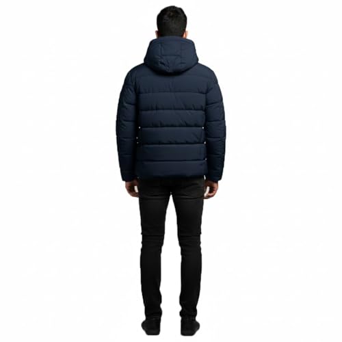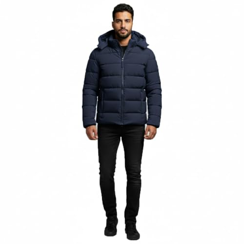 Generic - Men's Quilted Puffer Jacket with Hood, Navy Blue, Winter Outerwear