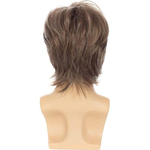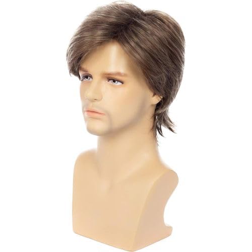 Generic - باروكة شعر رجالية قصيرة، لون بني، ستايل كلاسيكي متعدد الطبقات