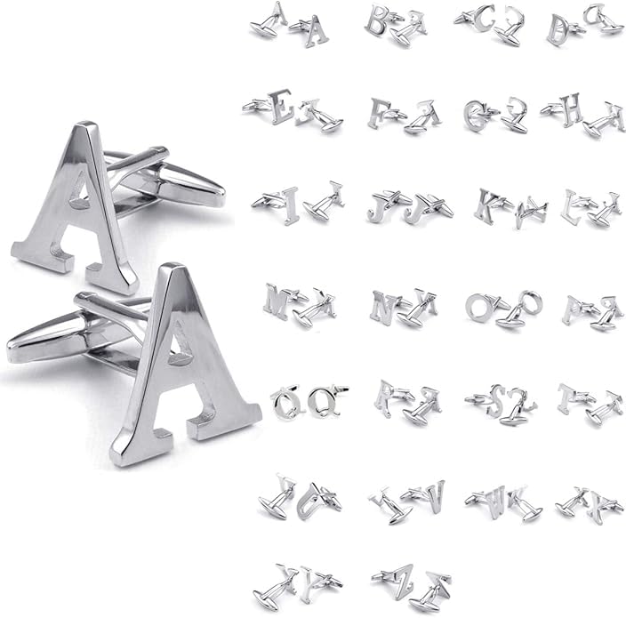fashion mania - ازرار اكمام بتصميم حروف ابجدية من الستانلس ستيل للرجال افضل هدية للزوج او الصديق