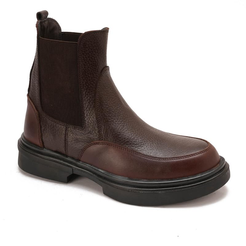 Generic - بوت تشوكا شمواه للرجال برقبة بطول الكاحل برباط أنيق ونعل سميك، بيج غامق