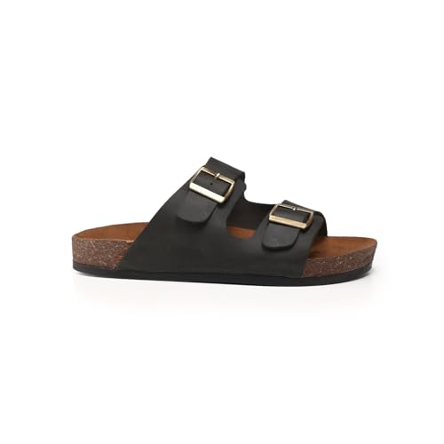 Generic - Men's Suede Leather Double Buckle Sandals, BC1250 (Black, 45)