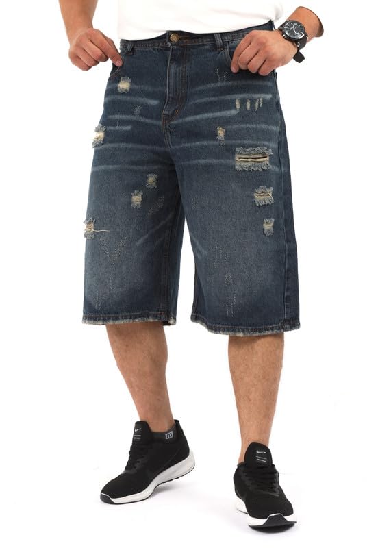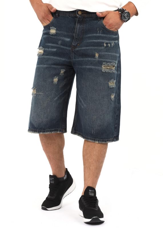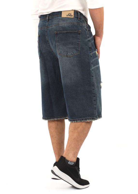 EGYWEAR - شورت جينز بارجل واسعة للرجال، ازرق غامق