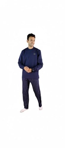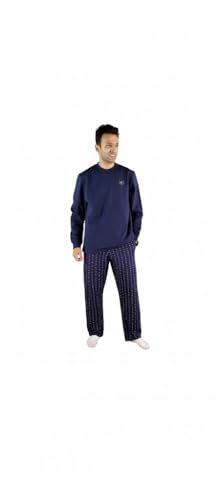 Jet (JET ) - Men's Winter Long Sleeve Solid Round Neck Long Plaid Pants Pajama - Navy