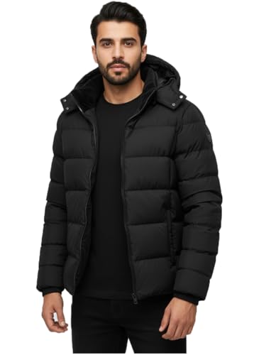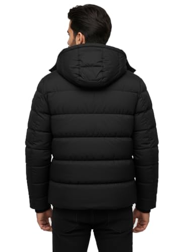 Generic - Men's Winter Puffer Jacket, Black Hooded Down Coat, Quilted Warm Outerwear with Zipper Closure