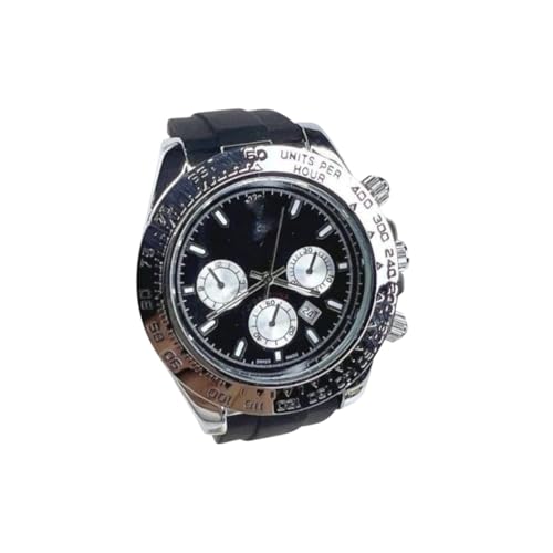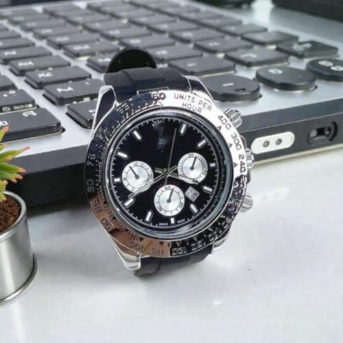 Generic - Men's Wrist Watch, Black and Silver, Rubber Band, Sport Design, 3 Subdials, Date