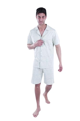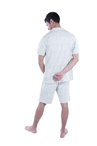 jil - Men SS PJ WITH BUTTONS SHORT Green-Transperant Yellow Flower 5XL