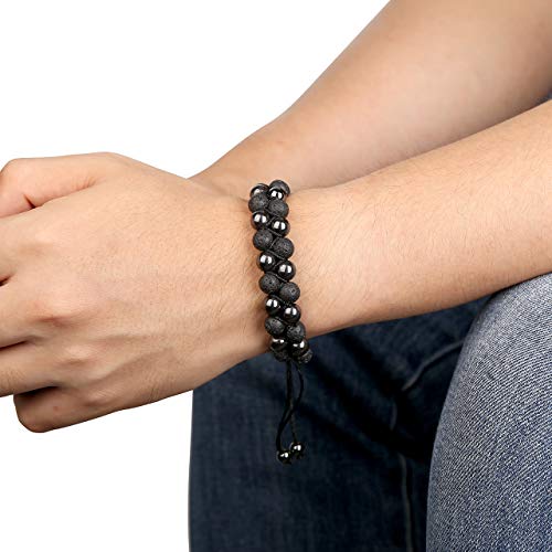 generic - سوار من حجر اللافا روك 8 ملم للعلاج بالروائح العطرية للرجال والنساء، سوار حبل مضفر من الحجر الطبيعي لليوجا