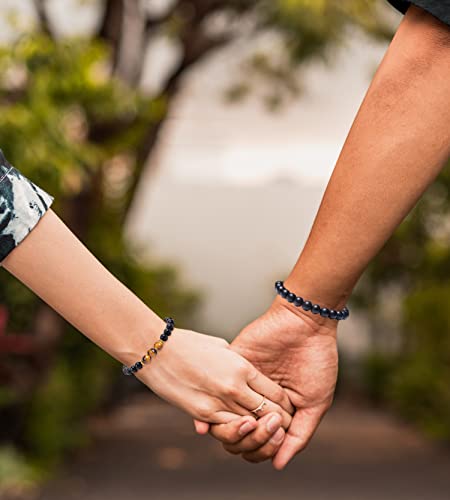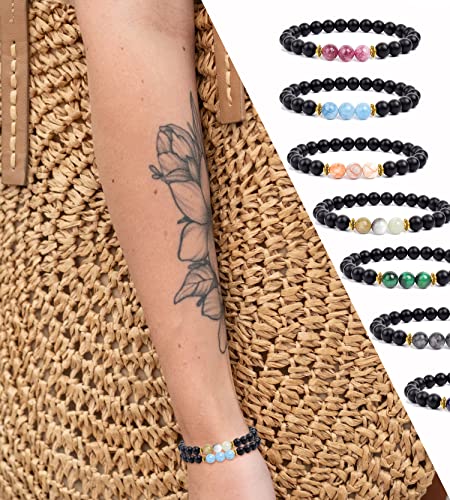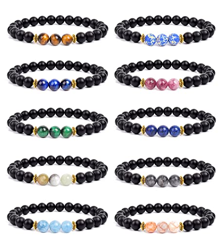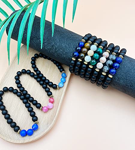 generic - Men Women 8mm Natural Stone Beaded Bracelets Black Matte Stretch Bracelet Semi Precious Gemstone Healing Crystal Anxiety Yoga Beads Bracelets Set Jewelry Gift