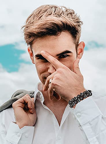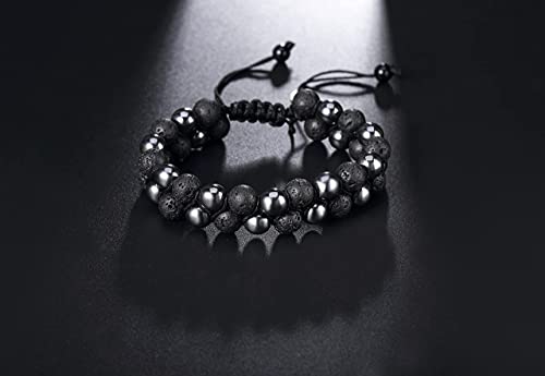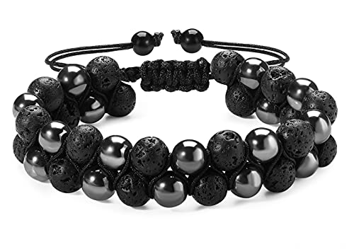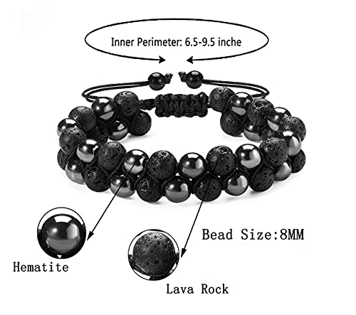 generic - سوار خرز من حجر الهيماتايت لافا روك 8 ملم بطبقة مزدوجة من الاحجار الكريمة الطبيعية، اساور قابلة للتعديل للعلاج بالروائح العلاجية للرجال والنساء، سوار موزع للزيوت العطرية