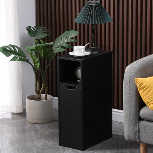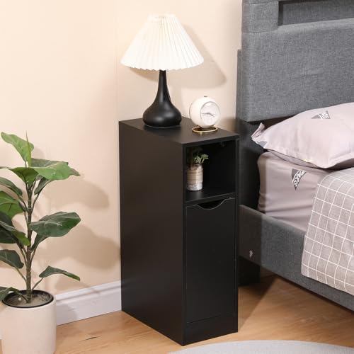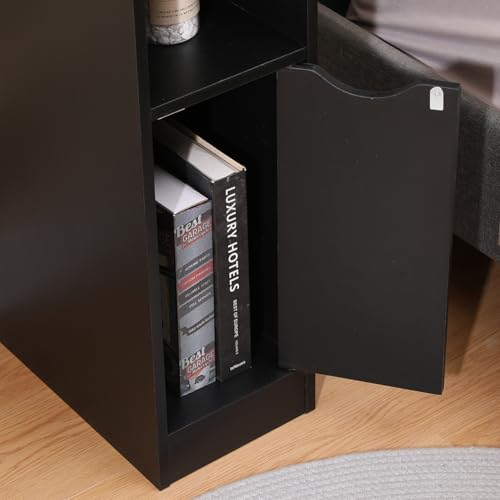 Menaka - Menaka Small Sofa Side Table Slim Bedside Table Cabinet Bedroom Thin Nightstand Wood with Storage Shelf and Drawers for Narrow Corner Space (black#2)