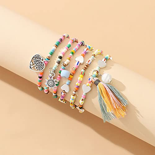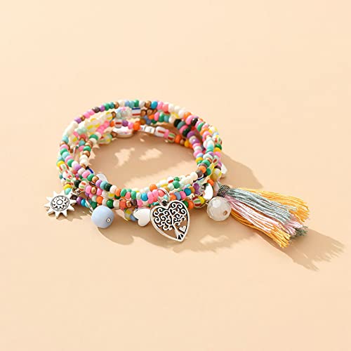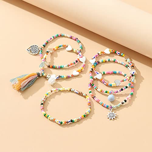 MengPa - MengPa Beaded Bracelets for Women Trendy Stacks Boho Bead Bracelet Pack Gold Friendship Jewelry (Mixed color-Heart) G3207M