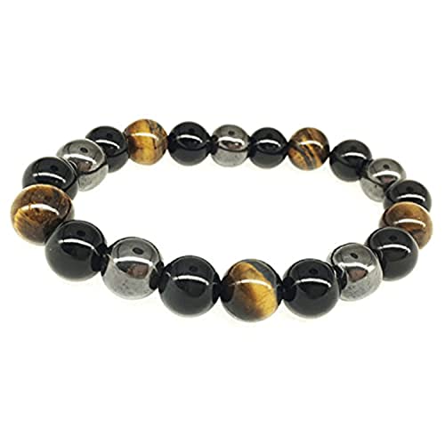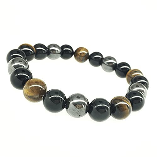 Generic - Mens 10mm Reiki Healing Energy Natural Tiger Eye Stone Magnetic Hematite Therapy Beads Bracelet