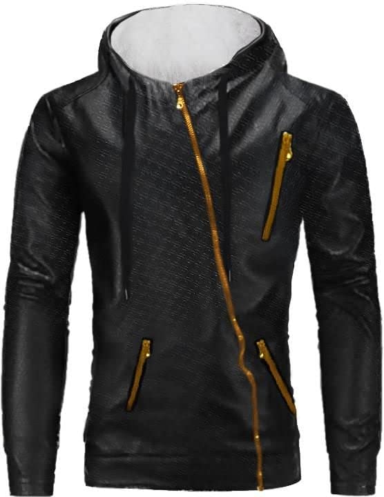 Generic - Mens Leather Fur Padded Hoodie Jacket Black