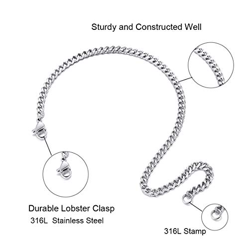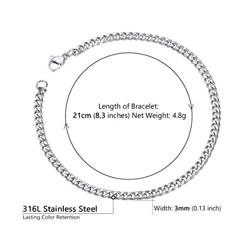 generic - سوار سلسلة كوبي معدني للرجال 3 ملم 21 سم من الستانلس ستيل هدية للاصدقاء