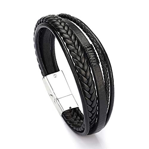generic - اساور جلدية مضفرة متعددة الطبقات للرجال مع مشبك مغناطيسي وحبل من جلد البقر، سوار معصم للرجال والنساء هدية عيد الحب، 7.5 انش، جلد،