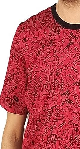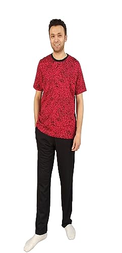 Jet (JET ) - Mens Summer Printed Short Sleeve Round Neck Long Pants Pajama - Red