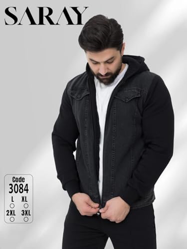 Generic - Mens Winter Jacket Men Winter Jacket Fur Lined Zipper Cabishu Coat Warm Denim X Cotton Coat | Casual Outwear (NO:3084)