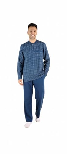 Jet (JET ) - Mens Winter Long Sleeve Round Neck Printed Solid Long Pants Pajama - Petrol