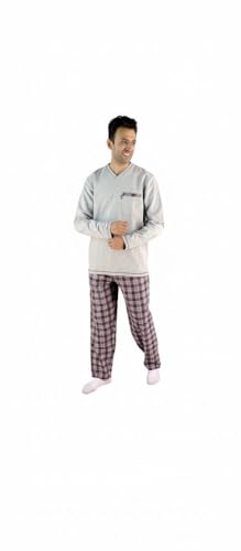 Jet (JET ) - Mens Winter Long Sleeve Solid Seven Neck Long Pants Caroh Pajama - Grey
