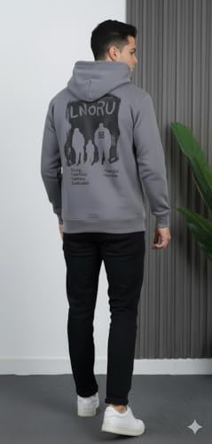 Generic - سويت شيرت رجالي شتوي ميلتون مبطن بغطاء رأس وطباعة عصرية مزدوجة (أمامية وخلفية) وتصميم كاجوال مريح