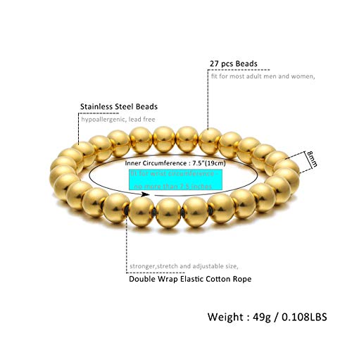generic - سوار مرن من الستانلس ستيل للرجال والنساء 8 ملم بلون فضي وذهبي وخرز دائري من الستانلس ستيل