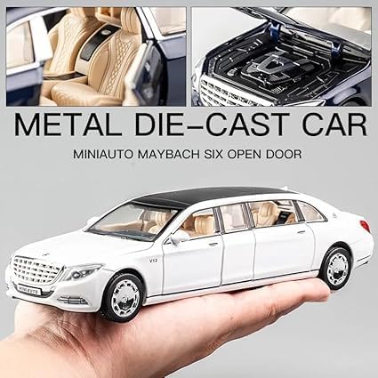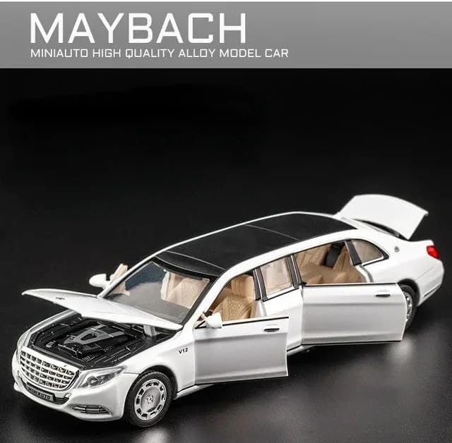 Generic - Mercds Benz Maybach S600 Alloy Toy Car Lincoln Town Limousine Car Models Pull Back Die-Cast Mercds Long Car 1:32 Scale Model for Kids with Rear Light and Music White