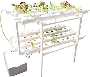 Generic - Meriadin Home Hydroponics System (NFT) - 8 Tubes and 64 Planting Sites - Multi-Layer Horizontal Frame for Growing Leafy Vegetables (Indoor/Outdoor)