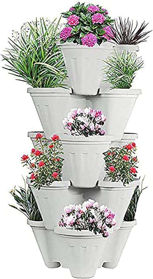 - وعاء زراعة عمودي من 5 طبقات وعاء الزراعة هذا يتكون من 5 أوعية قابلة للتكديس يمكنها استيعاب ما يصل إلى 15 نبتة مختلفة. صُنعت أوعية النباتات من البولي بروبلين عالي الجودة، فهي متينة ومقاومة للبهتان والتشقق. استفد من المساحات الصغيرة على أفضل وجه من خلال زراعة نباتاتك عموديًا. وعاء الزراعة المستقل هذا مثالي لذلك!