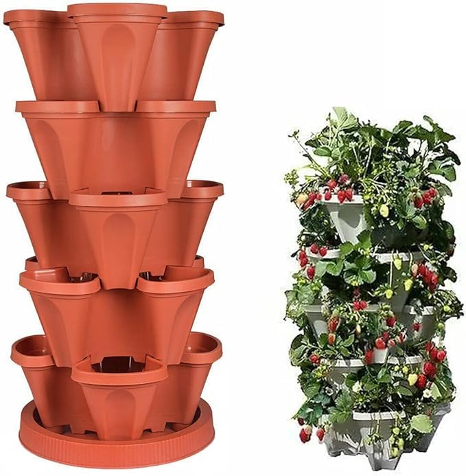 Generic - Meridian 5 Tier Vertical Planter Tower Planter for Herbs, Strawberries, Flowers, Space-Saving Home Garden Planter with Drainage Base, High Quality Plastic - Brick