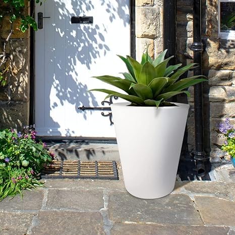 Generic - فاز بولي مخروطي الشكل بطول 60 سم، أصيص خفيف الوزن ومتين، أصيص زهور للبستنة، أصيص بلاستيك مرتفع من ميريديان ديكور، لون أبيض، مقاس 60 × 40سم